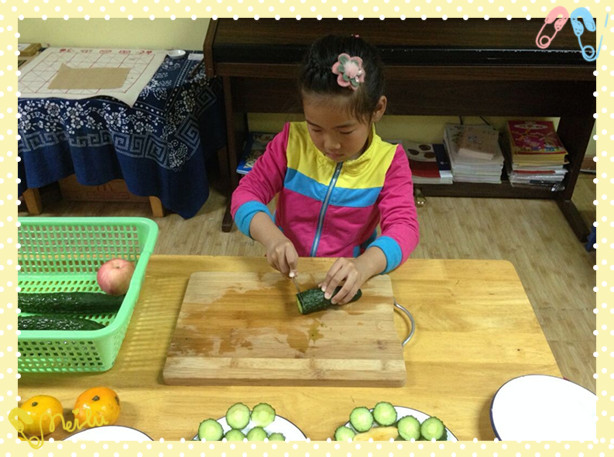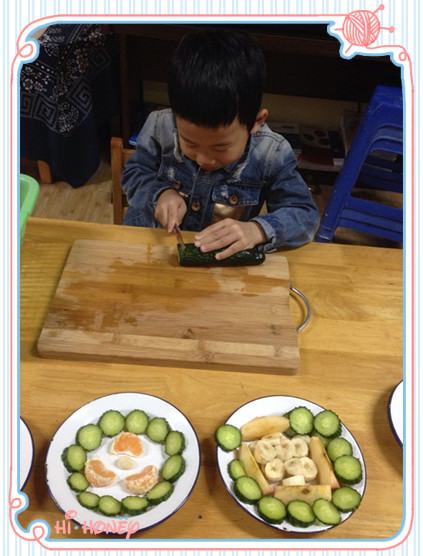 本次活动作为蒙氏课程活动项目,24日下午,各参赛队拿出自己早就准备好的水果,情绪高涨、摩拳擦掌,准备投入“战斗”。为了这次比赛,孩子们很早就开始准备,有的孩子请爸爸妈妈上网查找水果拼盘图片,有的孩子回家向大人请教技法,各参赛队员们拿出看家本领,剥的剥,切的切,插的插,摆的摆,各种造型,颇具匠心。