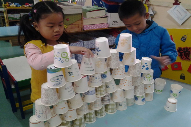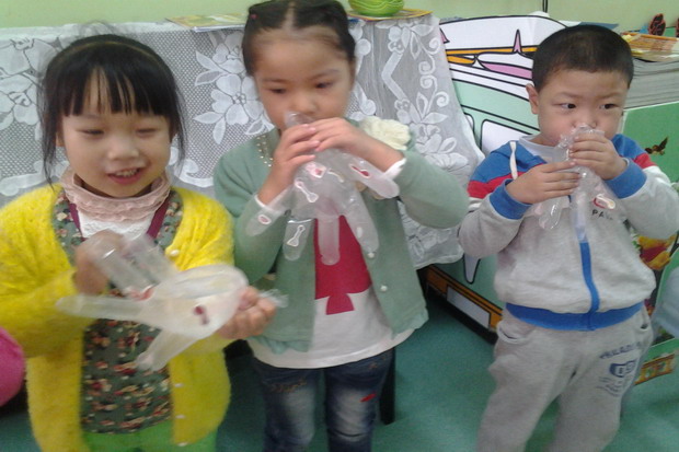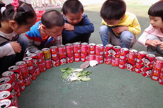 孩子们在科学游戏中真得玩得非常投入,特别是小灰鼠和小白鼠的饲养角,每到下课时间,孩子们常常围在那里,你看,小白鼠和小灰鼠它们是好朋友吗?为什么小灰鼠会欺负小白鼠呢?小白鼠喜欢吃青菜而小灰鼠为什么不喜欢吃呢?,它怎么喜欢吃米?,纸杯交替为什么可以垒那么高呢?塑料手套吹进了空气为什么会鼓起来呢等等?对于这些问题,老师们不是马上告诉答案,而是让孩子们运用多种感官参与观察,然后帮助幼儿分析、归纳引导幼儿通过实验,解决问题和交流讨论加以检测。总之,教师只有将科学教育贯穿于一日活动中,才能真正发挥科学教育活动的作用。更好的促进幼儿认知、情感的协调发展,在尝试操作的过程中,了解它们简单的原理;体验不断探索寻找答案的乐趣,让科学小游戏成为孩子们区角游戏中的一大亮点。