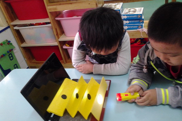 孩子们在区域活动中进行科学游戏,既开发了孩子的智力、培养了孩子们的学习兴趣,又让孩子们在玩中相互合作、相互交流、相互探讨,从而使他们的语言表达能力、思维想象能力、动手操作能力等均得到锻炼和提高,让幼儿感到科学并不遥远、科学就在我们身边。