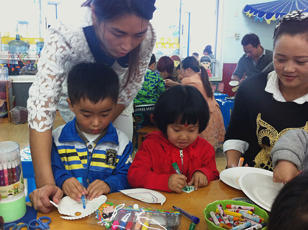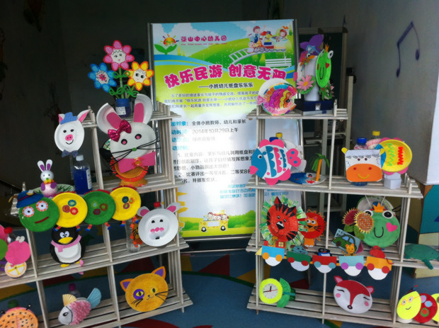 2014年10月29日上午,茶山中心幼儿园小班组开展了有趣的“纸盘乐乐乐”亲子动手制作活动。小班的每个孩子和家长都积极参与到了活动中,在这里家长和孩子一起体验了纸盘创意手工的乐趣。
