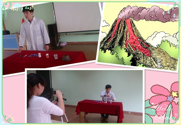 各个年级组都在精心准备,积极参加比赛。瞧,我们来一起看看我们大班年级组的录制现场吧。根据大班孩子对于宇宙的种种神秘现象非常好奇,大班年级组准备了一个小实验——火山喷发。由我们的赵老师演示了这个实验的经过。同时也少不了幕后工作者的努力。