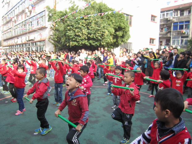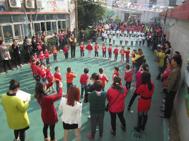 10月28日上午,朝阳幼儿园的家长、老师、孩子济济一堂,在大操场上举行了“我健康,我快乐”的幼儿早操、律动比赛活动,诚意邀请了9位家长委员会成员担任家长评委。