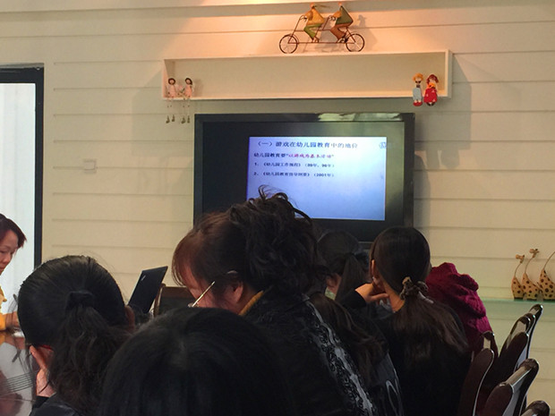 教研活动中,每位教师都认真观看华爱华教授的讲座录像。活动后,每位教师对游戏中的区域游戏有了更加新的认识与理解,通过学习,了解到区域游戏有着不可替代的教育地位。在幼儿园一日生活中,教师要从自身开始,重新认识区域游戏在日常教育中的地位,做到让幼儿快乐游戏、快乐学习。