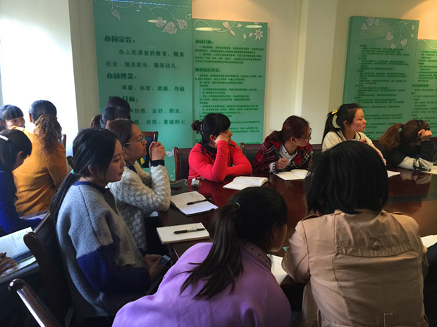 自从新《纲要》在幼儿园中深入的学习贯彻以后,新的教育理念象一阵清新的风吹遍了我们的心灵,大家从以往的旧观念中跳出来,开始从新审视自己的教育观念、教育行为。近期,彩虹幼全体教师在副园长缪老师的带领下,一起学习了华爱华教授有关于幼儿在区域游戏中学习与发展的视频教研活动。