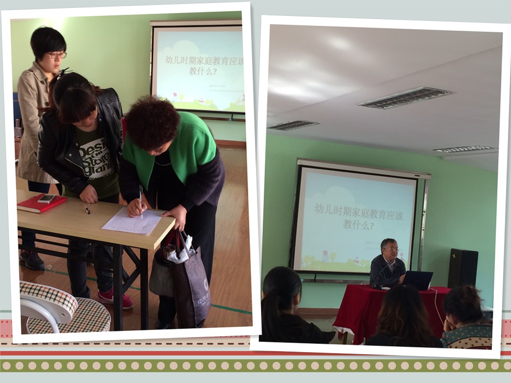 如果说玫瑰在充足的阳光、适宜的温度、培育者的精心料理下数十天就可以绽放,那么对于父母来说教育孩子则是以数十年为单位,只有父母付出全部的爱心与责任,并具有正确的家庭教育方法才能使孩子快乐成长并枝繁叶茂。为了使娑幼的家长树立正确的家庭教育观,学会用正确的方法引导、教育孩子,提高家教水平,11月5日下午,娑幼特邀德安医院心理卫生中心主任,常州市首届医德标兵、江苏省百名医德之星王瑞文主任医师来园为家长们做“幼儿时期家庭教育应该教什么”的专题讲座,给家长们送来一道“五味俱全的精神大餐”。