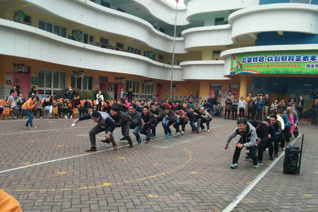 开幕式上,孩子们精神抖擞,在老师的带领下,以班级为单位有序入场。幼儿园助理热情洋溢地致欢迎辞,希望孩子们天天运动、天天健康、天天快乐!预祝孩子们在运动会上取得好成绩!我园举办亲子运动会是为了培养幼儿对体育活动的兴趣,增强各年龄段幼儿动作的协调性和灵活性,懂得在活动中要合作、谦让、遵守规则。为此,老师们精心设计每个活动,比赛项目丰富多彩,有“风狂火龙转”“、爸气十足”、“快乐神兜手”、“丛林大冒险”、“小动物拔牙”、“快乐单车”等项目。游戏富有趣味性,吸引了家长和小朋友们的参与,大家在游戏中体会了快乐,增强了家长与孩子之间的情感交流。
