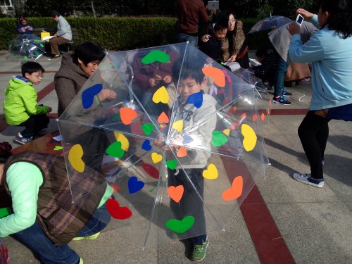 阳光、绿色、氧气、环保、家园亲子互动,使家长、孩子及老师都进行了一次与大自然的亲密接触。在活动现场,家长、孩子一起商量着,有的以秋天为主体、有的以动物、海底世界等为主体来装饰伞面。亲子相互配合、完美制作。最后还在热烈的走秀音乐中成功展示了自己的作品。活动中,孩子们充分感受到和爸爸妈妈在一起活动的浓浓亲情,也让家长找到了和孩子一起成长的乐趣和满足。