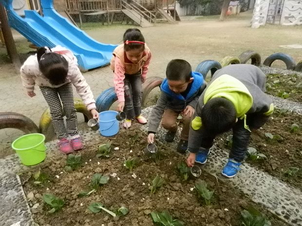 在这秋高气爽的季节里,实验幼儿园的小小种植园地热闹了起来,大班各班小朋友们在老师的带领和指导下,选择了青菜、大蒜种植在属于自己班级的田里。每一天早上,由小朋友们亲自浇水、记录、忙得不亦乐乎,精心地照顾着这一片生机盎然的小小种植园。瞧!在孩子们的精心照料下,这些小宝贝长得很可爱!小朋友们认真地浇灌着自己的小宝贝,看着自己种植的宝贝一天天长大,笑得可开心了!