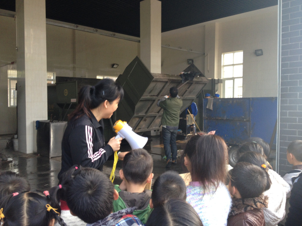 上午九点半市环卫工作人员带小朋友来到位于我园附近的垃圾处理站,活动一开始工作人员先给每个小朋友发放了一本环保宣传手册,其次让小朋友观看了垃圾是如何处理的,最后还让小朋友参观了近年来环卫工人如何工作的照片。