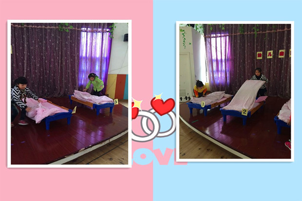 本次活动根据幼儿的年龄特点和发展水平制定了不同的比赛项目:小班组幼儿进行穿脱衣服的比赛;中班组幼儿进行穿、脱、叠衣服的比赛;大班组幼儿进行叠被子、整理小床的比赛。小朋友们比赛的热情也空前高涨,都在不断地练习叠被子、叠衣服、穿脱衣服的方法。随着主持人的一声令下,小班组的宝贝们立马脱下衣服,快速穿好,扣好扣子,翻好衣领,虽然他们才入园三个月,可是小手已经很能干了哦!中班组的小朋友也不甘示弱,在比赛中快速脱下衣服叠好,然后穿戴整齐。最后一轮比赛是大班组的整理床铺,比赛哨声一响,孩子们就争先恐后地铺平被子快速地叠起来,他们个个动作娴熟、行云流水般做好每个步骤,一旁观赛的小朋友也忙着加油,为他们呐喊助威。欢乐的比赛在小朋友们的阵阵掌声中结束了。