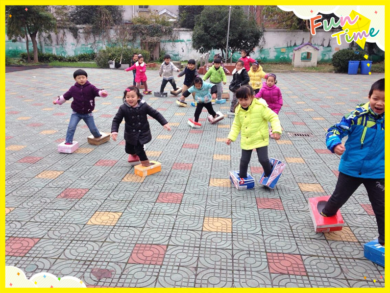纸盒是儿童身边既常见又熟悉的物体。奶盒、餐巾纸盒、鞋盒等各种放弃质料 ,都能够变废为宝。结合本周的主题“我运动 我快乐”,老师发挥自己的想象力 ,给孩子们设计了一双会走路的“纸盒鞋”,让他们穿上这双有趣的“纸盒鞋”比赛谁走得快。