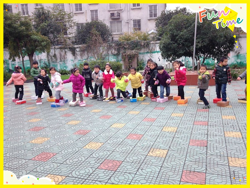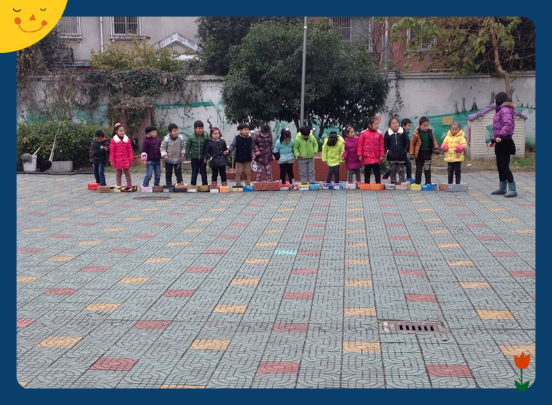 看到孩子们开心的笑脸,老师们觉得再辛苦地付出也是值得的。等孩子们渐渐熟悉了这双“纸盒鞋”,老师们还会让他们穿着特制的“纸盒鞋”进行跨越障碍物、曲线走等运动项目。这样既可以锻炼孩子不怕吃苦、勇往直前的精神,也能让他们充分体会到运动给人带来的快乐。