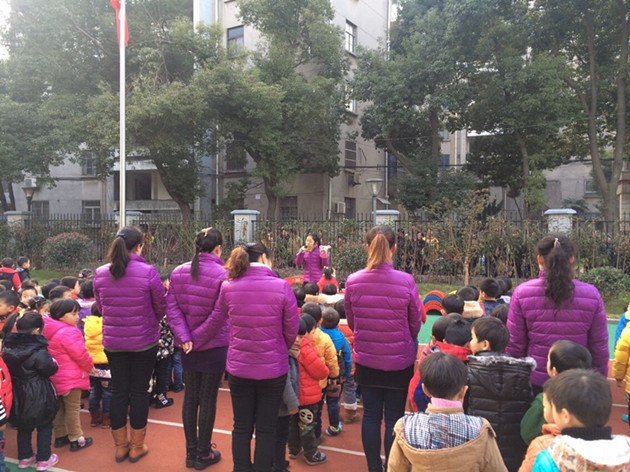 15日早晨,雄壮的国歌声响彻整个红梅幼儿园内,每周一次的升旗仪式正在隆重举行。今天国旗下谈话的内容是“走失了怎么办?”活动由小二班的朱老师主持。