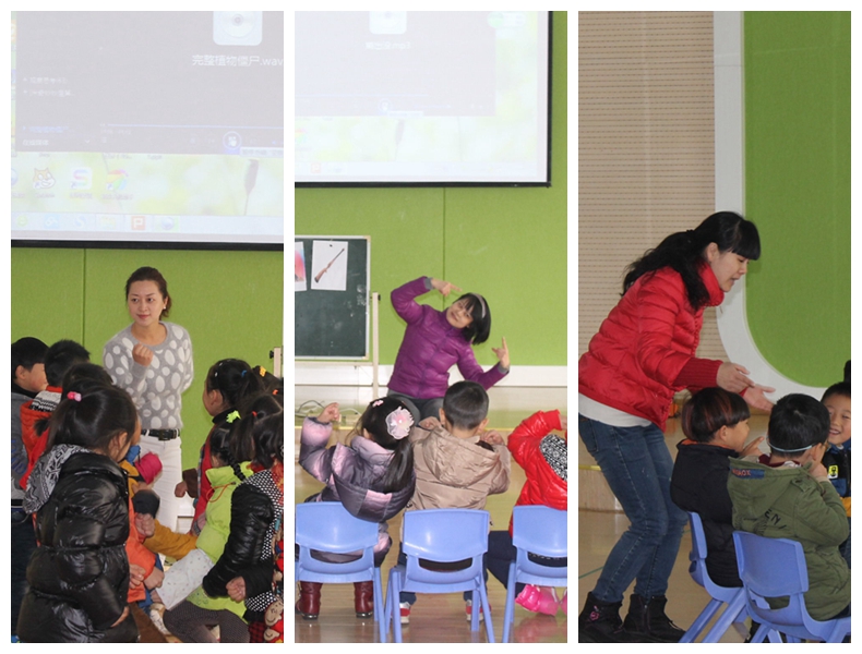 工作坊“入门级”成员在模仿原有录像课的基础上,也做到既认真吸收录像课中的精髓,又灵活内化为自己的特色。如周佳钰老师的《熊出没》紧紧抓住了动画中人物之间的关系,引导幼儿做音乐游戏;浦秋婷、朱亚佩、徐璐老师在《小老鼠捉迷藏》音乐活动中能关注到每个幼儿,并尊重孩子的发现与创造,既忠于模仿课流程,又有新的亮点;陈娴萍老师的打击乐《老鼠娶亲》惟妙惟肖,将老鼠娶亲的热闹场景演绎的淋漓精致;刘敏芝老师设计的老鼠娶亲教具更精美具有可操作性;工作坊的新成员朱旻晨老师虽然年纪最小,但也不甘人后,敢于在集体面前大胆表现。音乐,让大家回归本真,并体会到快乐!