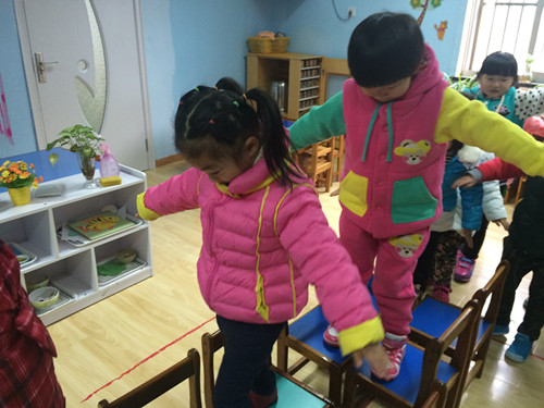 老师们结合幼儿的年龄特点,从提高孩子的运动能力和兴趣出发,将教室里的课桌和椅子变成了孩子活动的器械,桌子变成了“隧道”,椅子变成了“独木桥”,孩子们在“隧道”里爬行,在“独木桥”上行走,增加了孩子活动的兴趣。同时,大家对在室内体育锻炼中的细节问题也加以了关注,如室内体锻前的热身,既能避免造成肌肉拉伤和关节扭伤,又能补充全身的运动量,做到定时开窗通风,应保持室内锻炼时空气清洁、新鲜、流通,运动结束时不宜马上大量饮水……都一一进行了讨论和学习。