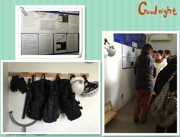 督查组首先查看了门禁管理,他们走进保安室,对配备齐全的安保器材有序摆放给予了肯定。其次查阅了墙上张贴的保安公司资质、保安上岗证、健康证、保安工作职责,签订合同等;督查组还考察了保安使用CK报警装置、操作监控设备情况,调看监控画面查看保安是否持械上岗、网购管理制度的落实情况。最后在翻阅台帐时,对我园保安能做好:外来人员登记、每天巡查记录、幼儿中途离园等10本台帐更是给予了表扬。
