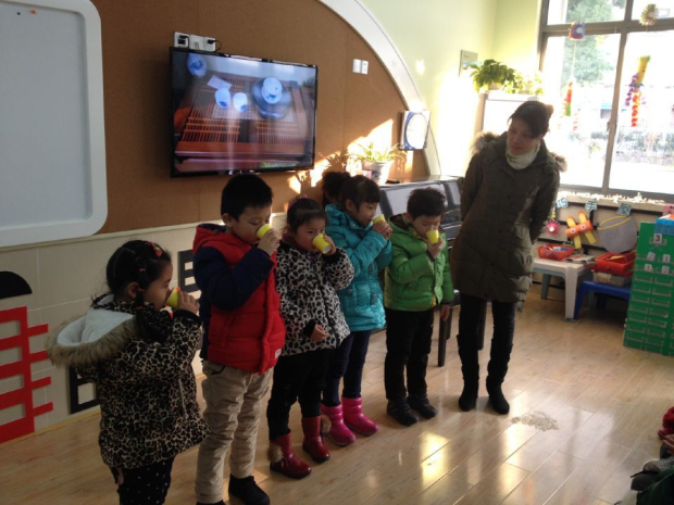 瞧,徐可馨的妈妈前期收集了大量中国茶的资料,加上自己是从事茶叶经销的业内人士,给孩子们带来了红茶和绿茶、茶壶、茶具、采茶叶、跳采茶舞等多媒体资料。和孩子们一起了解、学习中国的茶文化。