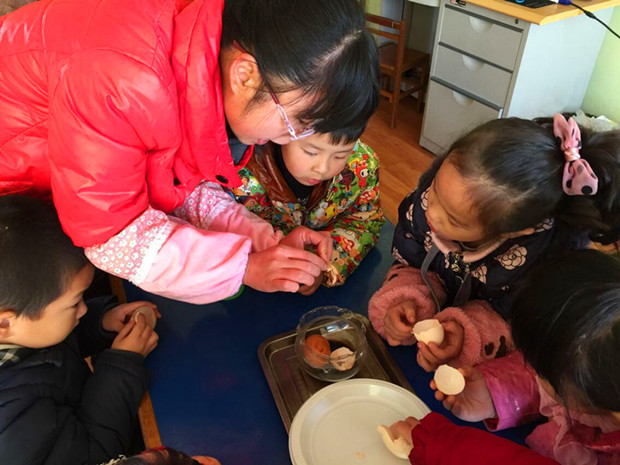 在活动中,首先请幼儿拿着小镜子观察自己的牙齿,然后通过尝一尝、看一看,了解牙齿的功能与作用;再通过看看、捏捏,观察捞出浸在醋里的蛋壳,了解蛋壳变软的原因,通过经验迁移,了解到蛀牙产生的原因,增强幼儿保护牙齿的意识,进一步学会正确的刷牙方式。