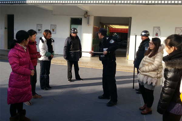首先,民警同志简要分析了当前校园的反恐形势以及开展防恐防暴安全知识宣传的重要意义;通过实际案例,就突发性事件提出了相应的防范措施,要求教师们提高警惕,保持冷静,迅速逃离或就近躲避,确保幼儿和自身安全。接着,成教官示范了校园安全防范的三大利器“辣椒水”、“警棍”和“钢叉”的使用诀窍,实地演练了一些常见的制服歹徒的实用方法,并教会了大家一些简单、讨巧的防暴技巧,老师们受益匪浅。