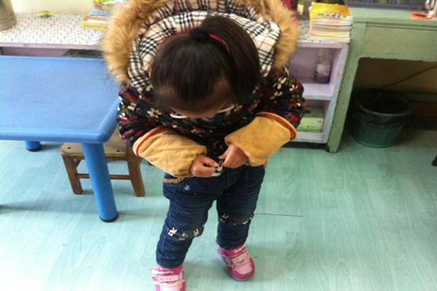 为了培养孩子们的生活自理能力,我们通过正面示范,让幼儿了解完成基本动作的要领,然后幼儿通过课堂、午睡等活动进行练习,增强穿衣裤、穿鞋子、塞衣服、拉拉链的能力。让他们懂得自己的事情自己做,同时,也让他们勇于面对困难,敢于克服困难使其养成了有始有终的好习惯。