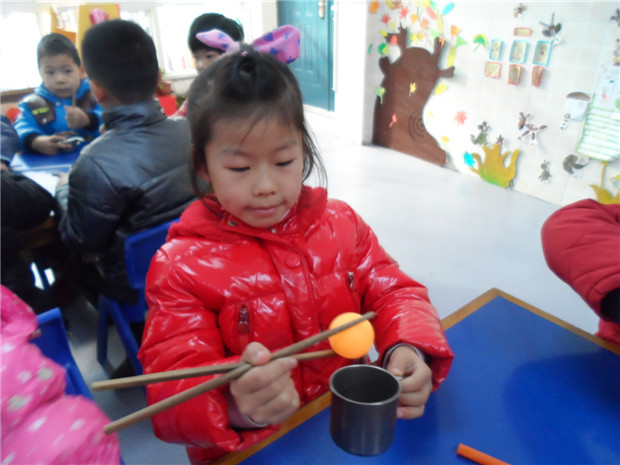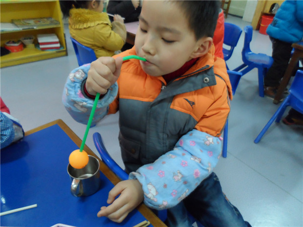 此次活动围绕“巧取乒乓球”的实验开展,活动开始老师抛出问题:“怎样才能不用手,把乒乓球取出来呢?”幼儿纷纷表达了自己的观点,兴趣高涨。动手环节幼儿通过各种材料的帮助,想出各种办法取出杯中乒乓球,整个活动室变成了一个严谨的科学实验室。当大家想出各种办法将乒乓球取出时,都发出了热烈的欢呼声。在活动最后,老师留给幼儿一个问题:如果乒乓球是在小口的玻璃瓶中,刚才成功的方法还都可以吗?让幼儿活动后仍有所思、有所想,引导他们爱上实验,爱上科学。 俗话说“实验是科学之母,才智是实验的女儿”。通过此次活动的开展,让幼儿自己动手做实验,亲身感受科学的神奇,让幼儿在游戏中增长科学知识。同时也锻炼了动手能力以及培养对科学的兴趣,形成尊重事实、善于质疑的科学态度,一步步走进科学的殿堂。