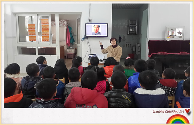 结合孩子们的年龄特点进行不同的纪念活动:小班齐看红电影、中班齐唱红儿歌,大班讲红故事,孩子们在不同的活动中感受毛泽东爷爷的博大胸襟、超人智慧,增强了爱国热情。同时让孩子感受现在的美好生活来之不易。小班的孩子在电影中,更直观的认识了毛爷爷;中班的小朋友们在老师的带领下开展了“红歌唱起来,纪念毛主席”活动。活动中,孩子们认识了毛爷爷,了解了毛爷爷的事迹,齐唱红儿歌《我爱北京天安门》来表达自己要向毛爷爷学习和崇拜毛爷爷的感情,在这个特殊的日子,孩子们以唱红歌的形式纪念缅怀毛主席,同时也借助这种活动形式让孩子更加爱园、爱家、爱国;大班的小朋友通过听讲故事,在丰富感人的故事中,感受毛爷爷的伟大与不凡!