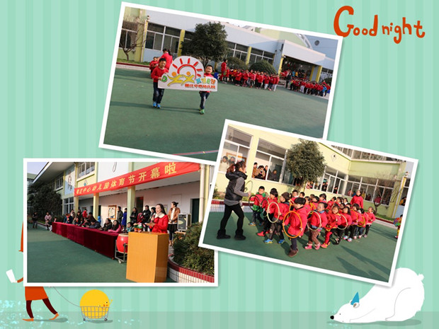 在副园长致辞、运动员和裁判员宣誓后,各年级组幼儿进行了会操表演。在操节中融入游戏,在动作中渗透音乐欣赏和身体控制,做操变成了“玩运动游戏”。大班的孩子们带着充满自信的笑容,根据音乐的变化灵活变化各种队形和造型,博得家长们的阵阵掌声;中班的孩子们精神饱满,举手投足都透露着一股认真劲儿;小班的宝宝们也不赖,他们稚气的动作迎得了满场喝彩。