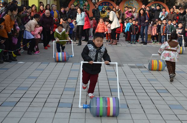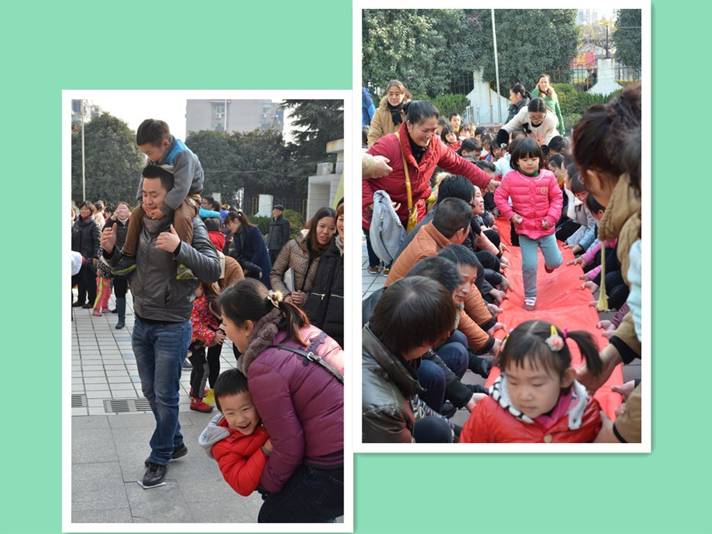 整个运动会由幼儿项目、亲子项目和家长项目组成。在幼儿项目“勇敢的小兔”和“小小赛车手”中,孩子们充分发挥了自己的个人魅力,尽自己最大的努力完成比赛为自己的班级争光,为小伙伴的精彩表现喝彩。在运动会中,最别具一格的是亲子项目。亲子游戏“亲子总动员”中,全体家长齐心协力才能使孩子们在横幅条上完成凌波微步等高难动作。在“小白兔和大灰狼”亲子游戏中,为了保护自己和孩子不被大灰狼抓去,家长们研究着怎样才能使脚在报纸上保持不动。热烈欢快的游戏让家长们兴奋积极地参与,充分的拉近了家长和孩子之间的距离,让家长体验到运动中的快乐、童真。家长们的积极参与、孩子默契配合,为活动添了更精彩的一笔,最后家长们的拔河比赛更是把此次运动会推向的高潮。