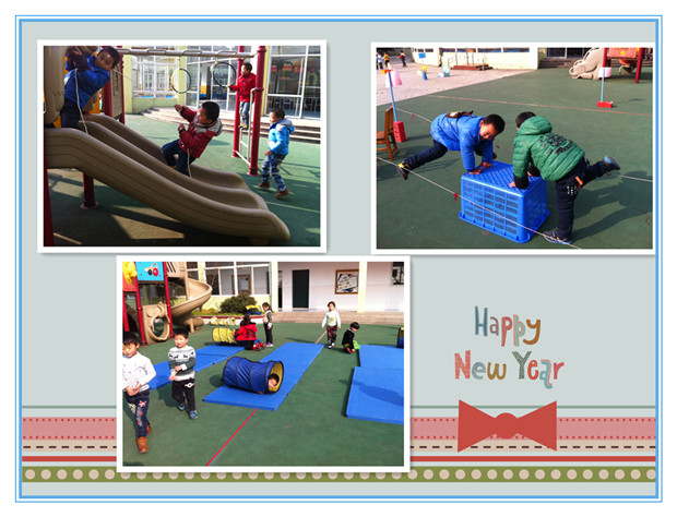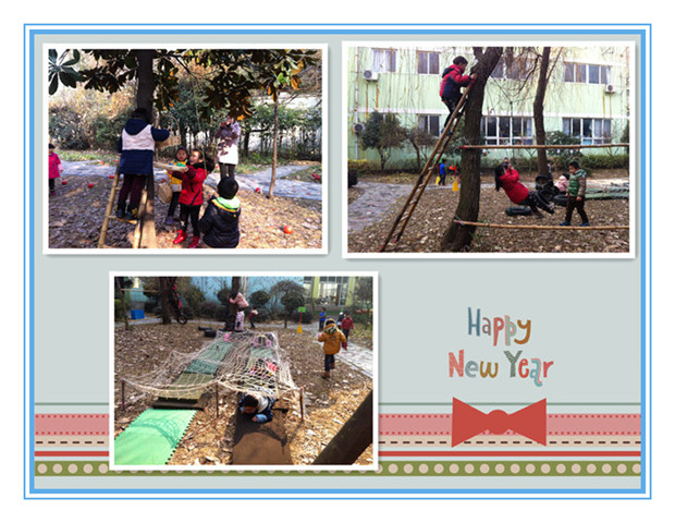 游戏中教师根据幼儿年龄特点和发展水平选择适宜的活动内容,制定了详细的活动方案,特别是教师们充分利用自然环境及身边现有资源、废旧材料等,给孩子创设宽松愉悦、富有趣味性和挑战性的游戏环境,支持、鼓励幼儿自主选择,有效促进了幼儿基本动作的协调发展。如小班的户外游戏“解救球宝宝”、“树叶赛跑”、“快乐翻滚”等让孩子与自然接触中体验了野游的乐趣;中班的“穿越电网”、“丛林探险”、“打雪仗”中领略了器械在组合上的野趣;大班的“翻山越岭”、“滑雪”“勇攀高峰”中让孩子感受到了爬树、翻越的刺激感。游戏中孩子们个个精神气爽,脸上充满欢乐、激动的喜悦,时不时听到孩子们相互交流“这个游戏太刺激了,太好玩了”。