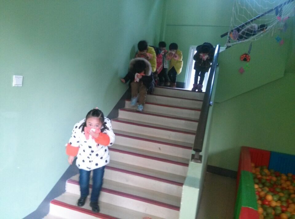 大风车幼儿园一贯重视将安全教育渗透到日常教学中,常抓不懈,为孩子的安全、健康快乐创造环境。近日,大风车幼儿园的全体师生进行了“消防安全逃生演习”活动。目的是为了让孩子学会自我保护,遇到火灾懂得快捷、有效的逃生办法。下午3点左右,孩子们正在游戏,忽然听到紧急的哨声,老师迅速按紧急预案的疏散路线带领幼儿拿起湿毛巾,捂住鼻口,猫着身子,迅速有序地下楼。很快,孩子集中到操场安全地带,老师迅速地清点人数。