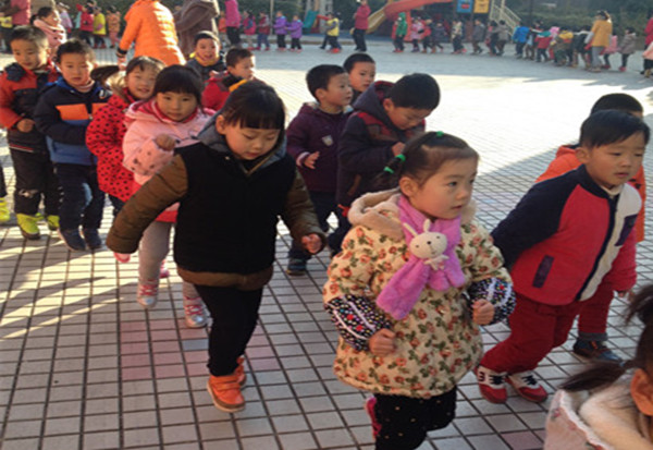 为了让孩子拥有健康的身体和饱满的精神,晨间锻炼时老师带领孩子们在宽敞的操场上、草坪上跑步,他们的跑步遵循科学的运动方法,结合慢、快、慢的原则。先以较慢的速度进行热身,引领所有孩子初具参加跑步的身体准备,然后稍微加快速度正式进入晨跑状态以达到锻炼的效果,最后结束时减速慢跑促使全身恢复自然原态。每天的晨跑中除了绕操场跑,还增设各种跑步的队形、有花朵形、八字形、螺旋形、圆圈形等等,不同的队形增添了跑步时无限的乐趣。