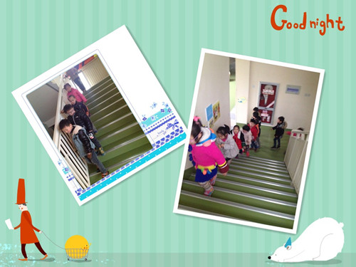 各班通过照片、视频直观地让幼儿学会观察可能导致踩踏的现象,判断危险可能发生的时间和状况,跟孩子讲解踩踏事件可能发生的因素:在下楼梯时,要靠右行走,不逆行,要做到相互谦让,不争先抢行;在人多的地方行走时,不要随意停下脚步,不能做一些诸如系鞋带的动作。通过情境游戏,教给孩子在踩踏中学会自救:快速找寻安全出口、双脚站稳紧抓固定物;若自己不幸被人群挤倒后,要设法靠近墙角,身体蜷成球状,双手在颈后紧扣以保护身体最脆弱的部位……在情境模拟演练过程中,孩子们形成居安思危的意识,自觉远离人群密集的地方,减少踩踏发生的几率,并初步掌握了必备的自救技巧。