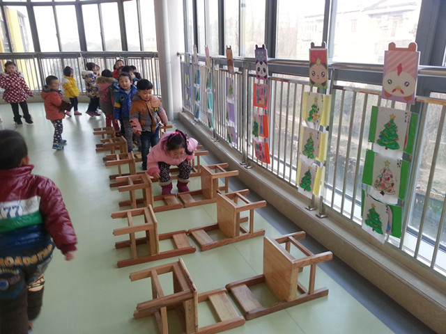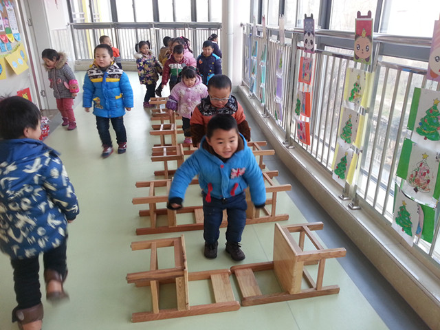 在晨间活动时,我们开展了趣玩椅子的活动,使得幼儿探索出椅子的各种玩法,充分锻炼了平衡、跳等动作,体验运动的挑战与快乐。我们组织孩子们将小椅子组合在一起进行了走独木桥、过小山、过小桥、跨泥坑的游戏,游戏很顺利孩子们完成的很好,虽然刚开始需要老师的帮助,但经过练习孩子动作的熟练程度提高后孩子完成动作的技巧也掌握了。