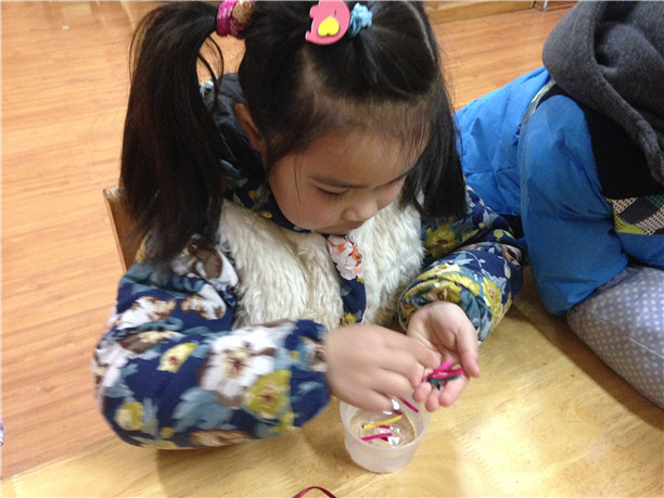 在亲手制作、反复尝试的过程中,孩子们积极地观察探究冰冻和融化的自然现象。教师精心的活动安排让孩子再次感受冬天里的乐趣。