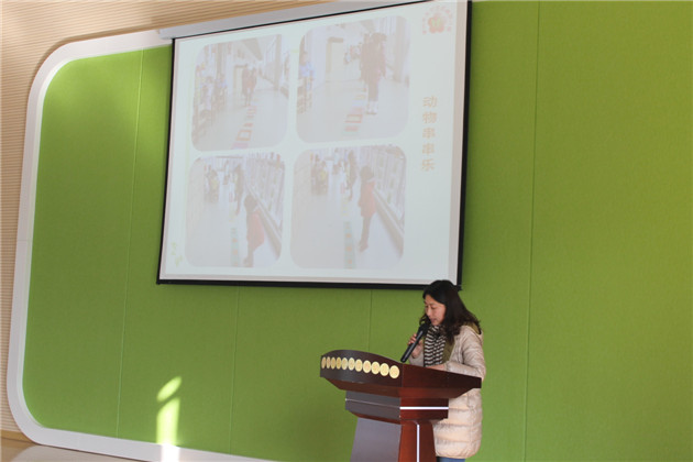 活动开始,我园就新园音乐特色环境的创设进行了简短的介绍。虽然进入新园时间短,只有短短两个月的时间,但是在全体教师和幼儿的共同努力下,已经是处处生机勃勃,特色彰显,特别是我们的音乐特色活动室、班级音乐特色活动区、年级音乐剧场,随处体现幼儿自主探索的痕迹,保证了幼儿快乐成长的空间。