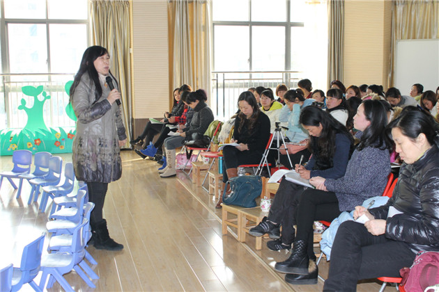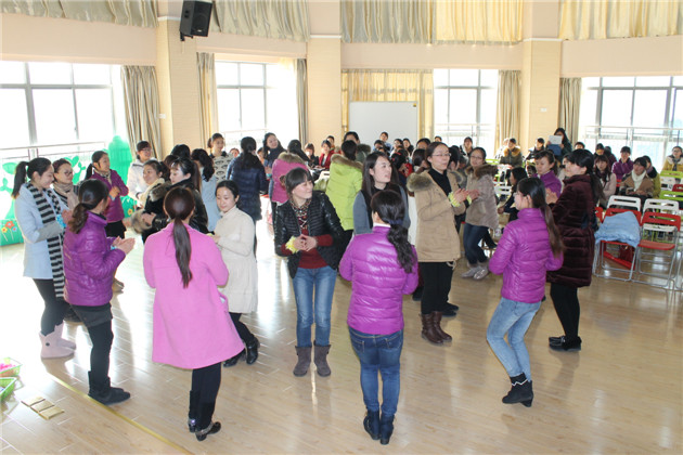 由我园教师自编自创的幼儿圆圈舞带领全场教师happy动起来,从单圈舞到双圈舞,再到三圈舞,参与教师在我园贾老师的带动下欢乐舞蹈,并你我互动,大家从实际参与中成功体验到了幼儿圆圈舞在不同年龄段的编排方法和指导策略。