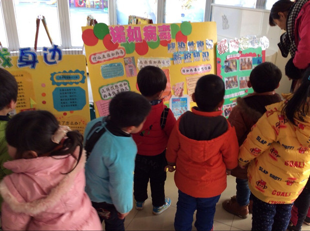 在活动中,教师首先制作了宣传板在门厅展示,向家长宣传诺如病毒防范相关知识、进行培训等方式来拓宽这方面的知识,引导家长、幼儿关注病毒传染的方式及注意事项。其次,班里的教师通过视屏、图片的方式,告诉幼儿诺如病毒可通过污染的水源、食物、物品、空气等传播,让幼儿注意勤洗手、讲卫生,少去人口密集的公共场所。再次,保健老师及时做好防护措施,每天注意做好幼儿晨检,生病幼儿做好家访工作,督促各班做好消毒防护工作。
