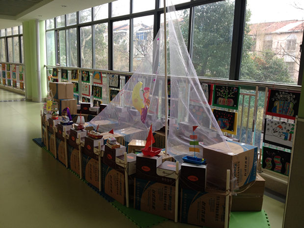 红梅幼儿园 作为一所音乐艺术特色园,在园内宽大的内走廊环境中结合音乐元素、融入动漫卡通形象,通过唯美的画面和令人愉悦的形式,潜移默化地感染幼儿。瞧,老师们齐心施展自己的聪明才智,增设艺术趣味性空间,“小狗抬花轿”、“ 小老鼠娶亲”,孩子们会被这色彩鲜艳充满童趣的画面触景生情,可以欢快的唱一唱,演一演。同时又在造型、色彩上注意艺术性和趣味性,更可以驾驶“游轮”领略大海的浩瀚。孩子们可以自由选择角色,尽情地表演……