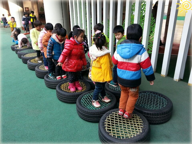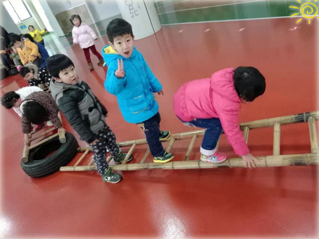 在活动中,老师们组织孩子们到场地选择自己喜欢的活动内容,然后去相关区域参加活动。虽然在活动中,孩子们面对的并不是自己熟悉的本班老师,也不是自己熟悉的同班幼儿,但在区域老师的指导下,他们开心快乐地投入游戏,通过游戏锻炼身体的协调能力、挑战自身的勇气、以及陌生同伴间的配合,交到了不少新朋友。