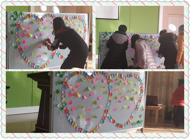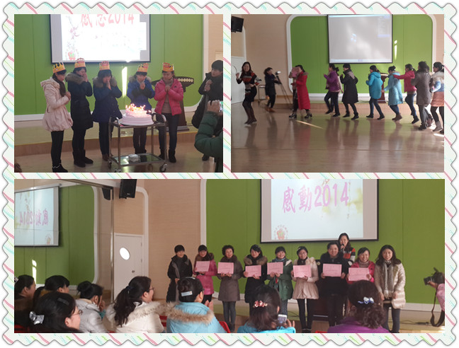 在“感恩2014”的温情时刻中,园长代表幼儿园向五位在2月份过生日的教师们表达了亲切的问候和衷心的祝福,并为教师们送上了生日皇冠和生日蛋糕。各班的教师们纷纷为她们送上祝福的话语。过生日的教师们都带生日皇冠,脸上洋溢着幸福的笑容。随后,老师们在爱心墙上写下了2014最想感谢的人和对他说的一句话。最后整个活动在欢乐的“爱的抱抱”游戏中结束,真是“掌声、笑声、声声入耳;心情、友情、情情暖心。”
