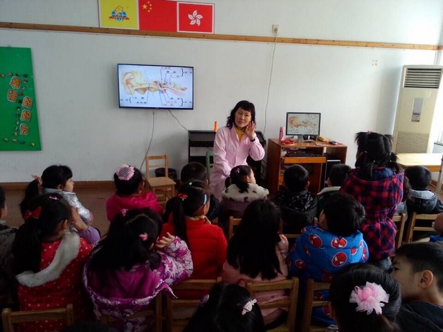 师走进课堂,与孩子们开展了“爱耳护耳总动员”的宣传教育活动。