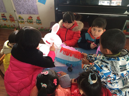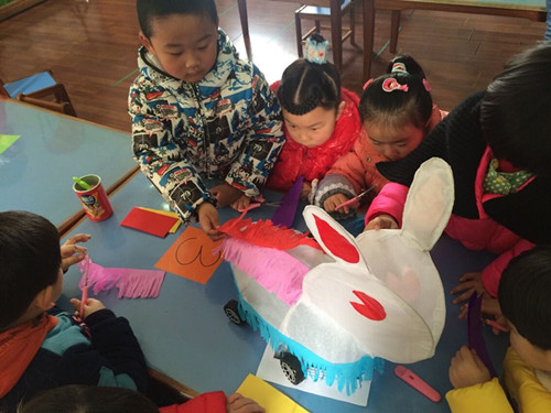 一年一度的元宵节伴随着春天的脚步而来,北环幼儿园里处处张灯结彩,洋溢着喜气洋洋的节日气氛。元宵节是一个很隆重的节日。如何让幼儿更深切地感受到这个节日的氛围,怎样让他们更加了解元宵节对中国人的意义呢?兔子灯——是具有中国传统风格的一种装饰。我们从孩子们喜欢的各种各样的花灯入手,组织开展巧手制作花灯手工游戏。旨在通过做兔子灯让幼儿能更加深切体验中国传统文化,感受元宵节的快乐气氛。