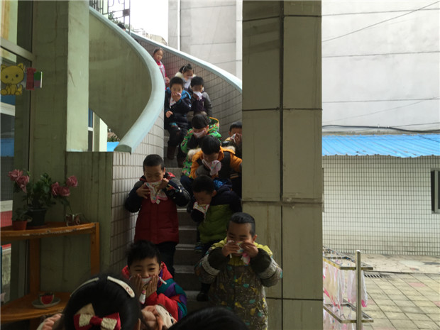 这样井井有条地对突发的“火灾”警报做出的反应,不仅是在一次演习中练习的,更多的是平时在安全教育的时候,老师对幼儿的言传身教。比如火灾中经常会出现的浓烟现象应该如何应对,听到警报的时候最先在班级要紧跟老师撤退等等。