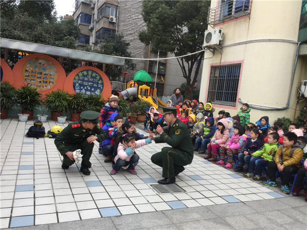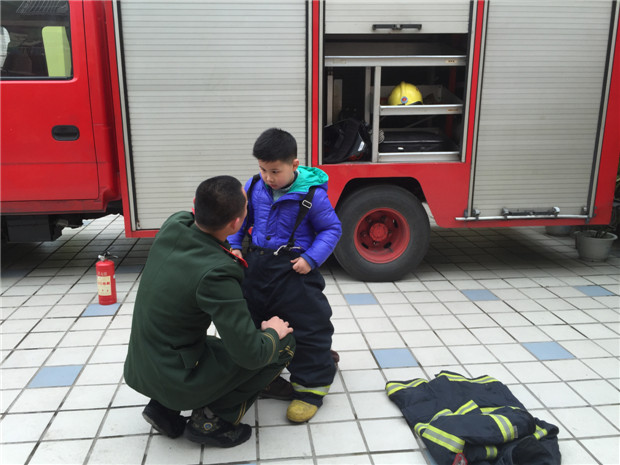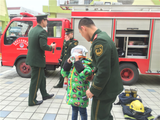 演习过后,由消防官兵进行消防知识培训。幼儿不仅学会了正确逃生的方法,而且在在消防官兵的指导下,也体验了当小小消防员的角色,试穿上了消防服、戴上了消防帽。