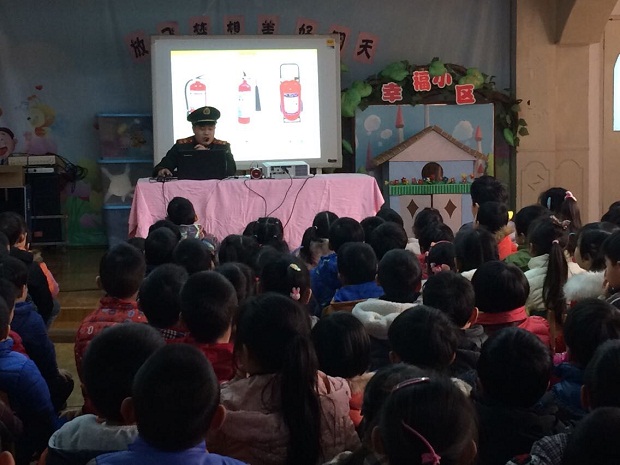 杨教官利用课件、图片等深入浅出的讲解各种消防安全知识,并通过生动有趣的问答互动、实地演练等,充分调动孩子们的参与热情。根据学龄前儿童的心理特点,杨叔叔采用“游戏式”的上课方式与孩子们进行互动,以贴近小朋友喜爱的动画人物喜羊羊学消防知识,带领小朋友们从“火灾的起因”、“如何逃生”、“如何报警”、“消防标志”等几个系列消防安全知识动画短片,直观形象生动全面地向大家介绍了消防安全知识,最后还介绍了一般火灾的发生过程以及日常防火、灭火的基本常识,纠正了一些消防误区,提高了大家的消防安全意识。此次活动的开展,既加强了孩子们的消防安全知识,同时也是对校园消防安全问题进行的全方位的探索。课堂上,孩子们笑声不断,回答问题积极踊跃。