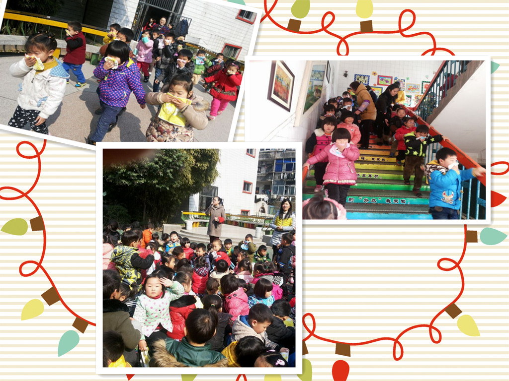 待到“万事俱备,只欠东风”时,随着园长“朝阳幼儿园消防疏散演练开始”的一声令下,警报播放员方红立即开启火警警报信号,参加演练人员各就各位,各班幼儿用手帕或衣袖等捂住口鼻,猫着腰有序地按指定路线“逃生”,