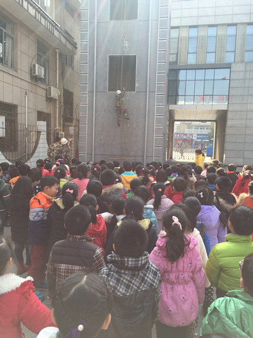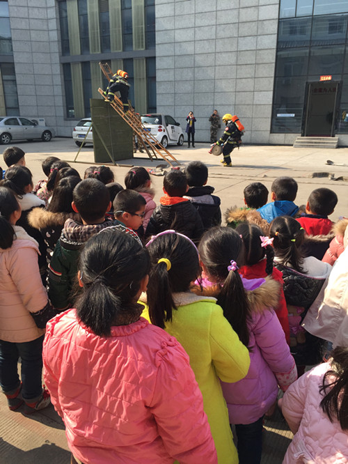 首先,由消防员叔叔向小朋友们介绍了消防车辆和一些消防救生器材,请孩子们观看了消防官兵高空救人表演,孩子们不时为消防员叔叔们欢呼喝彩。接着又带领小朋友们参观了消防员叔叔们的学习室、寝室、图书室、电脑室、消防教育展示厅、荣誉室等等,当孩子们看到那些有棱有角的被褥和摆放整齐的各类物品时,小朋友都忍不住惊叹起来,最后,消防员叔叔又耐心细致地介绍了消防车上各器具的名称和用途,使孩子们认识了云梯、高压喷射枪、泡沫喷射枪、定位器、呼救器等各种器具,并且还用实物向孩子们展示了消防衣的穿着、防烟帽子的使用等。