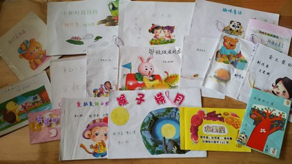 作品种类繁多,所制作的图书精彩纷呈,形式也新颖独特:有手绘插图,立体呈现;有实物黏贴、配以文字。孩子们在惊讶声中翻阅着书架上的一本本图书,并不时相互讨论着。自制图书不仅给孩子们带来很多的成就感和阅读愉悦感,更是在亲子合作中给孩子、家长留下了一份收获的喜悦、一份美好的记忆。