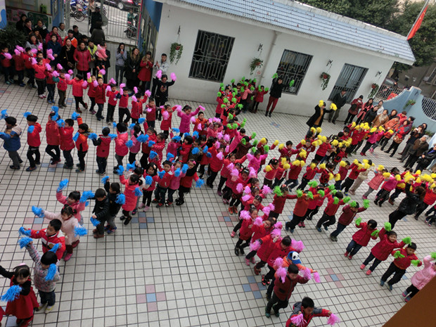 本次活动的亮点,是三个年级的早操器械,全部由废旧的物品制作而成。大班利用垃级袋制成“拉拉操手花”;中班利用光碟制作“棒棒糖”;小班利用口香糖瓶与垃圾袋制作“七彩响瓶”。随着早操音乐的响起,大班幼儿雄赳赳,气昂昂地跑进操场,他们动作准确,精神饱满;中班组的小朋友们个个朝气蓬勃、神气活现的;小班幼儿也模仿小动物的动作进场,动作是那么可爱,犹如一个个天使般的小精灵,动作是那样稚嫩,却是那样的认真……整个比赛组织有序,三个年级都不甘示落,个个使出了杀手锏,师生精神姿态好,动作整齐到位。