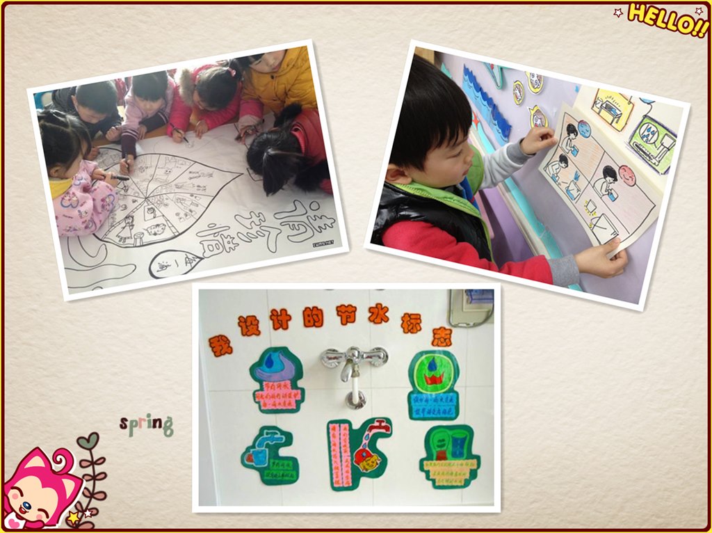 教师和孩子们还一起设计粘贴了节水标志,完成了节水宣传画。并且建议小朋友回家后,监督家里人也要节约用水。让我们的小手牵大手,带动更多的人加入到我们的节水活动中,共同为保护水资源贡献自己的一份力量。